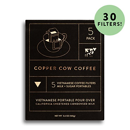 Copper Cow Coffee Vietnamese Single-Use Portable Pour Over – with California Sweetened Condensed Milk Packets – Dark Espresso Roast – 100% Ethically Sourced & Sustainably Grown (30 Pack, 6 Boxes of 5), hopefully can help you in buying the product.